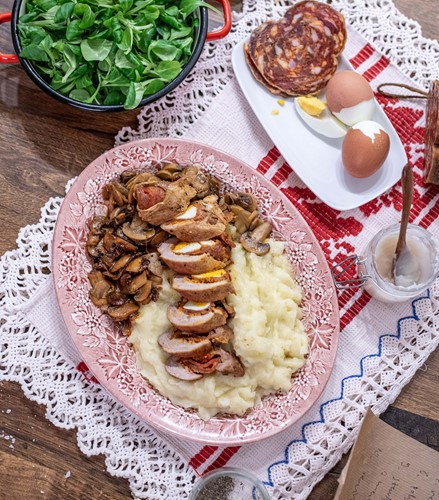 Za predjelo kruh s masti i malo pikantne mljevene paprike. Možda fina pašteta od pastrve? Ili jednostavna, a ukusna kombinacija jaja, brašna i kiselog vrhnja poznatija kao cicvara? Kulen, čvarci, slanina, kobasica, to se podrazumijeva, a nađu se tu i mirisne pogačice s čvarcima, lokalno čvarkuše… A to je tek početak!