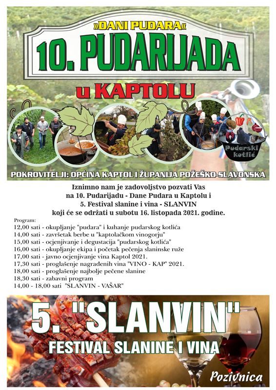 U Kaptolu će se ove nedjelje održati 5. Slanvin - festival slanine i vina te 10. Pudarijada - Dani Pudara.